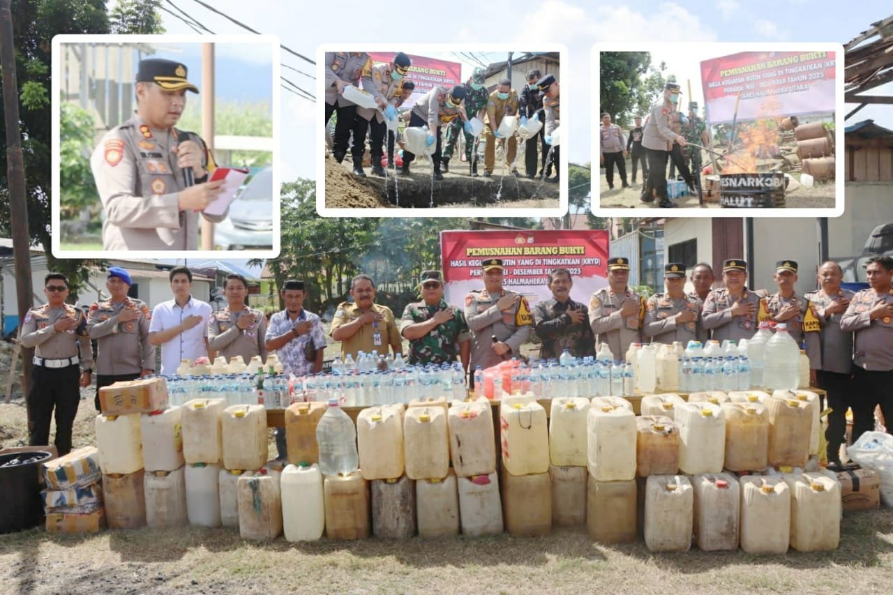 HALMAHERA UTARA, KabarMerdeka.id – Kepolisian Resor (Polres) Halmahera Utara, telah melakukan pemusnahan barang bukti hasil Operasi yang digelar dalam rangka menjaga keamanan dan ketertiban masyarakat. Pemusnahan dilakukan di Halaman Mapolres Halmahera Utara dengan disaksikan oleh Forkopimda Kabupaten Halmahera, Tokoh Masyarakat, dan media. Selasa (30/12/2025).